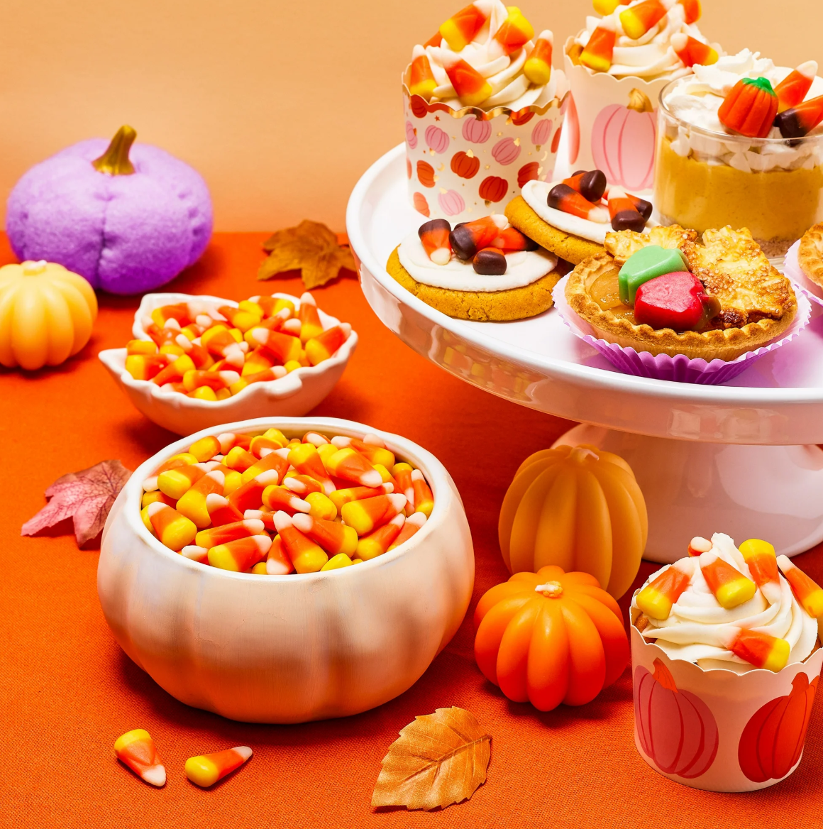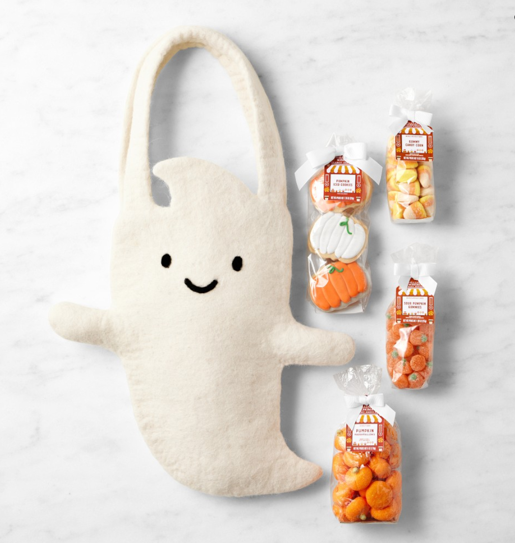 庆祝万圣节的秘诀是什么?送一份充满节日气氛的糖果和美味佳肴,送给特别的人一份惊喜。这份礼物由我们与姐妹公司 West Elm 联手打造,包含喜庆的棉花糖南瓜、酸橙南瓜软糖、香草焦糖玉米软糖和新鲜出炉的曲奇饼干。所有糖果都装在一个可爱的幽灵手提袋里——绝对是万圣节的必备单品。