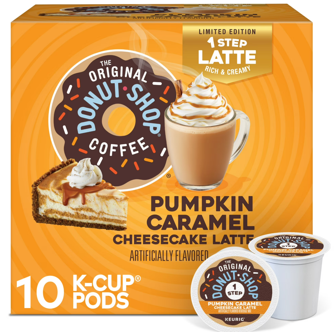 正宗甜甜圈店出品,南瓜焦糖芝士蛋糕拿铁口味K-Cup咖啡胶囊,10颗装