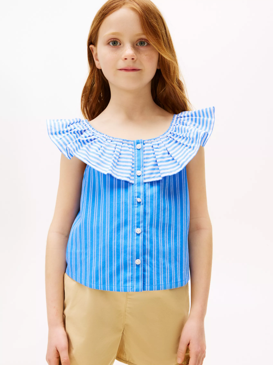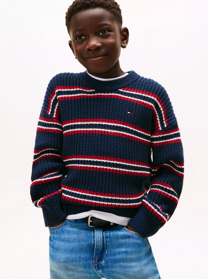 柔软的针织牛仔面料带来舒适穿着体验,而遍布全身的条纹和亮丽的粉色则赋予其大胆俏皮的气质。可调节肩带和实用腰部按扣确保穿着稳固,此外,标志性的 OshKosh logo 贴片更添时尚气息。搭配白色针织T恤,轻松打造酷炫造型。